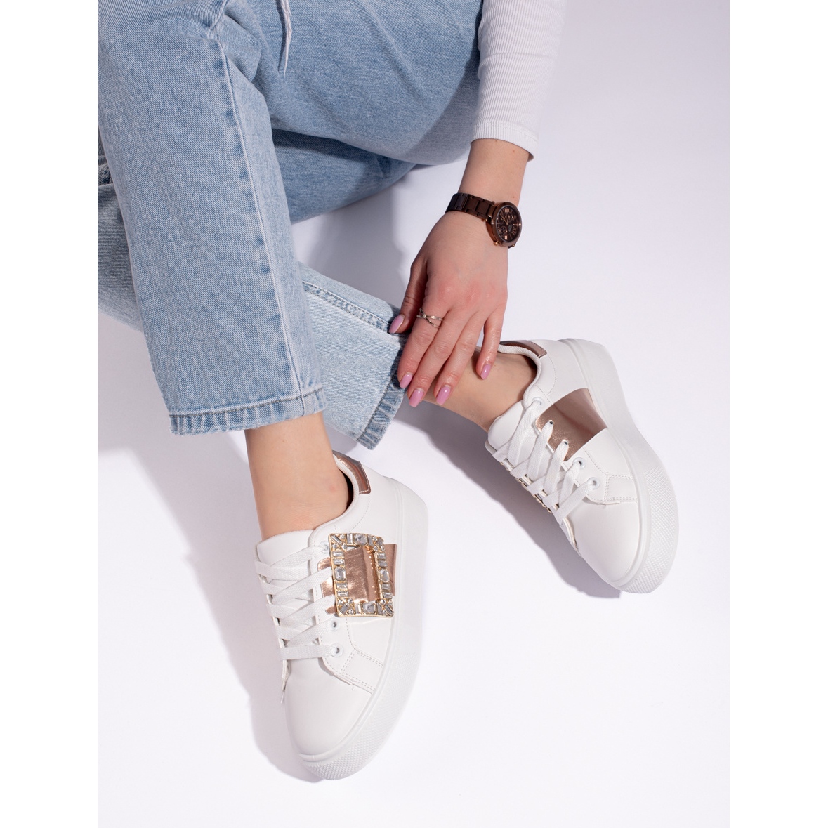 N'attendez plus ! Choisissez des baskets blanches pour femmes avec un empiècement doré de Shelovet et ajoutez un peu de brillance à votre look de tous les jours. De telles chaussures donneront à votre style une nouvelle dimension.