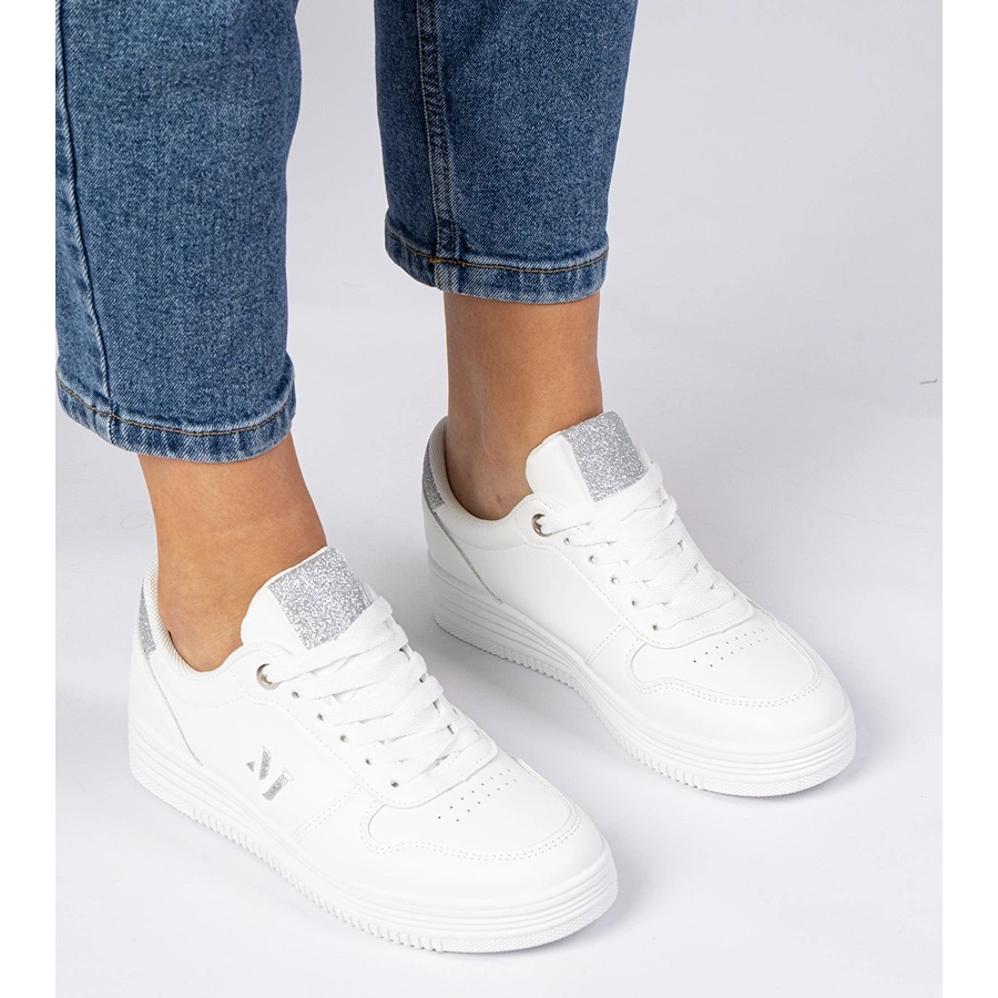 Détails: Baskets blanches pour femmes avec paillettes argentées
