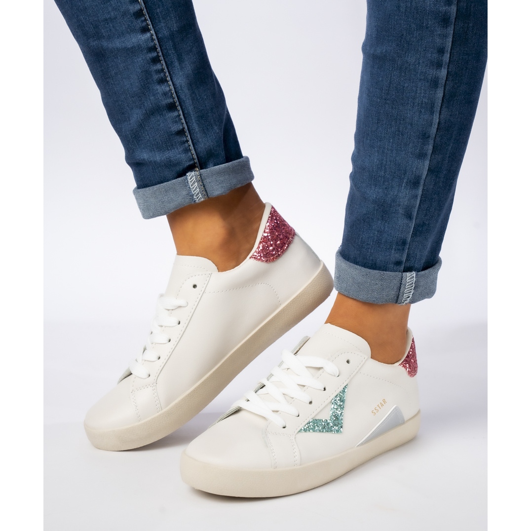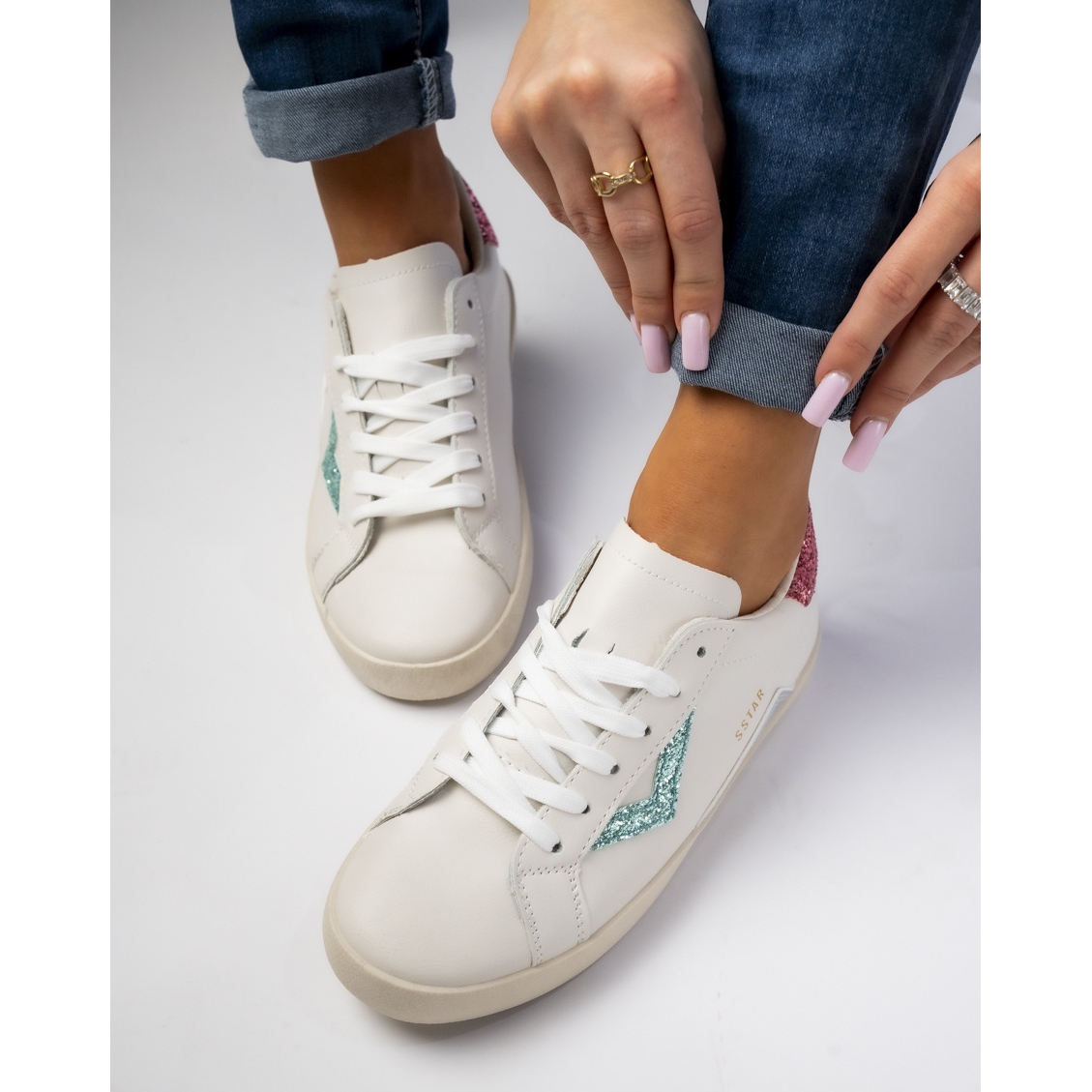 Détails: Baskets blanches pour femmes, inserts verts roses