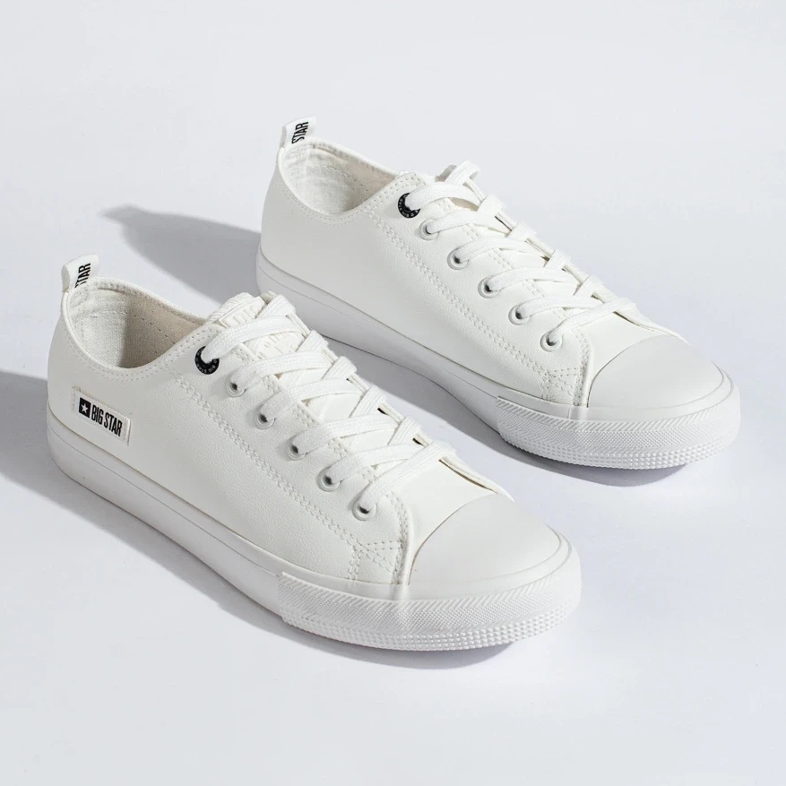 Sneakers blancs masculins Big Star KK174008 - Chaussures universelles et confortables tous les jours. Fabriqués en cuir écologique avec une apparence lisse et minimaliste, ils sont excellents dans les stylisations décontractées et sportives pour le printemps, l'été et l'automne.