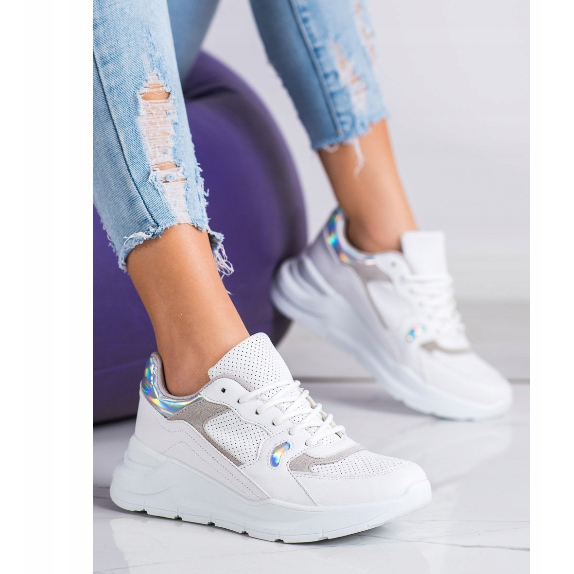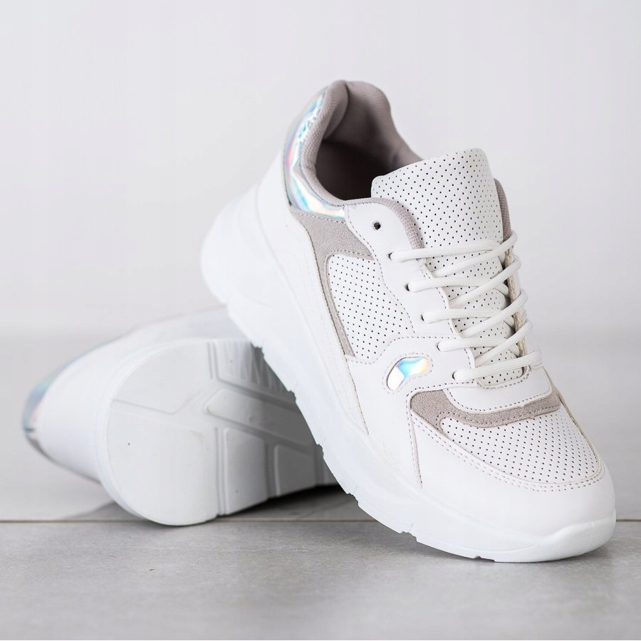 Le design classique et intemporel des baskets blanches SHELOVET, accentué par de subtils inserts holographiques qui scintillent et scintillent sous les rayons du soleil, attire non seulement le regard, mais donne également aux chaussures un caractère individuel. Ce sont les détails qui rendent ces chaussures uniques et les distinguent des autres modèles similaires.