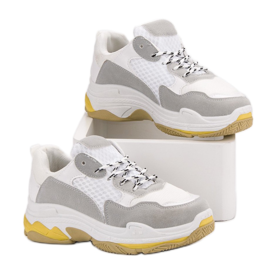 Ils se caractérisent par des accents jaunes originaux qui attireront l'attention et ajouteront du caractère à n'importe quel style. Elles offrent un excellent confort grâce à l'insert en tissu et à un talon doux et intégré. La semelle synthétique avec bande de roulement garantit non seulement la durabilité, mais aussi une bonne adhérence sur diverses surfaces.