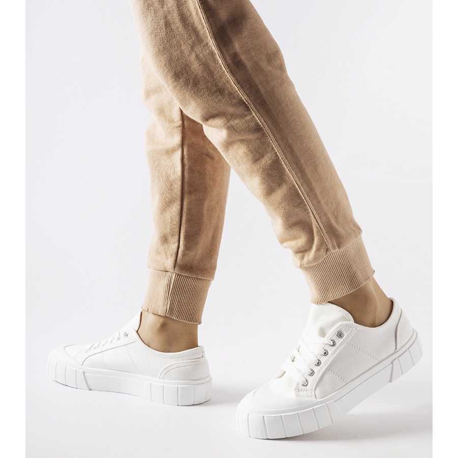 Détails: Baskets blanches sur une épaisse plateforme Egidio
