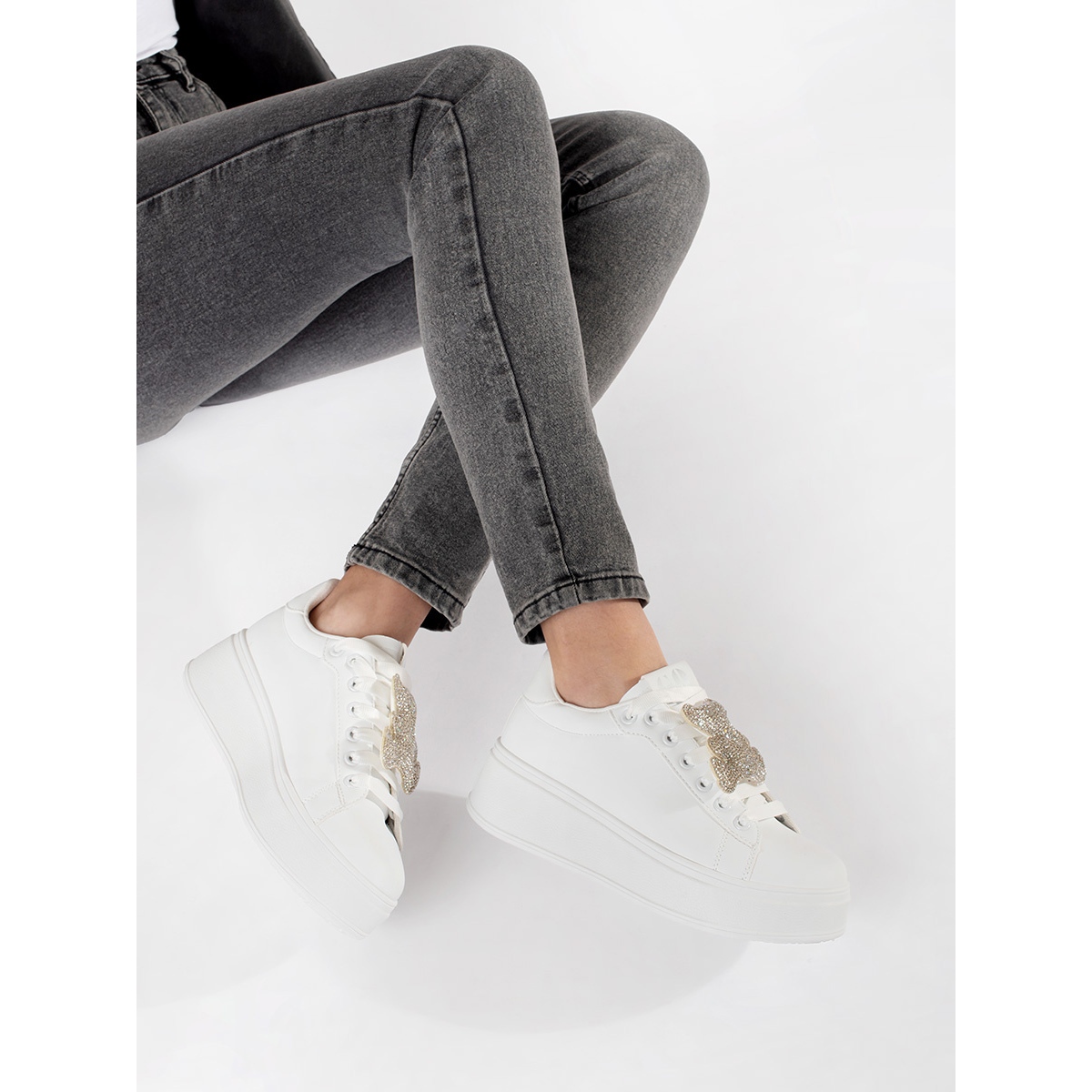 La hauteur devant la cheville et une plate-forme de 4 cm de haut allongent non seulement optiquement les jambes, mais assurent également un amorti adéquat lors de la marche. La semelle en plastique avec une bande de roulement garantit une bonne adhérence et une bonne sécurité sur diverses surfaces, ce qui fait de ces baskets un excellent choix pour les promenades, les achats ou les réunions avec des amis.