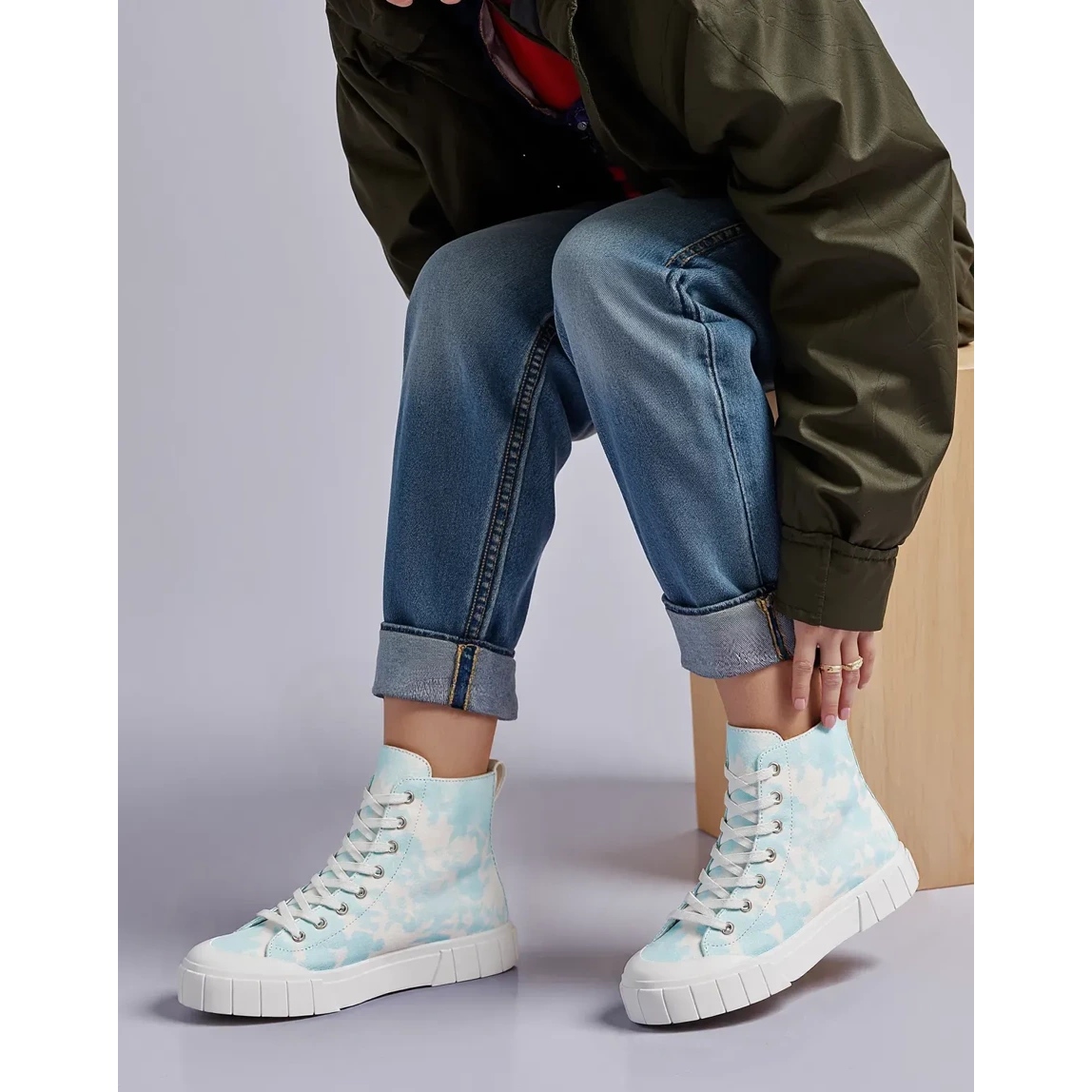 Les baskets bleues des femmes sont une combinaison de classiques et de modernité. Le fermoir supérieur et lacé élevé assure la stabilité et une semelle épaisse leur donne un caractère urbain. Fabriqués en matériaux de haute qualité, ils garantissent le confort et la durabilité. Parfait pour les stylisations décontractées et sportives.