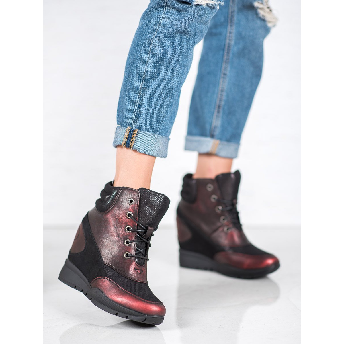 Les baskets rouges bordeaux de Sergio Leone sont un choix parfait pour les femmes à la recherche de chaussures élégantes et confortables au quotidien. Fabriquées en tissu de haute qualité et en cuir écologique, ces chaussures allient élégance et fonctionnalité. Grâce à leur couleur unique et leur coupe tendance, les baskets complètent parfaitement les styles décontractés et leur confèrent une touche distinctive.