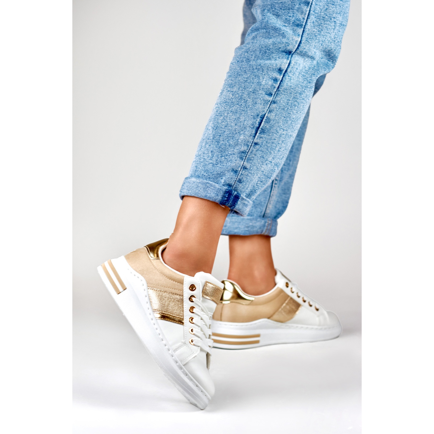 Détails: Baskets casual femme blanches et beiges
