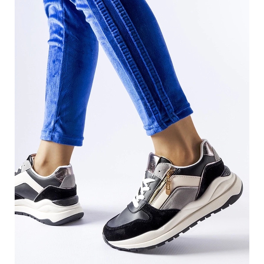 Les baskets sont faites de matériaux de haute qualité qui adhèrent parfaitement à la jambe, tout en offrant un confort lors du port. Le nez rond permet la libre circulation des doigts, ce qui rend les baskets parfaites pour les longues promenades ou l'activité physique. Un avantage supplémentaire est la décoration épaisse de la chaîne décorative, qui est le coup de cette saison - c'est un élément qui distingue ces chaussures des autres modèles.