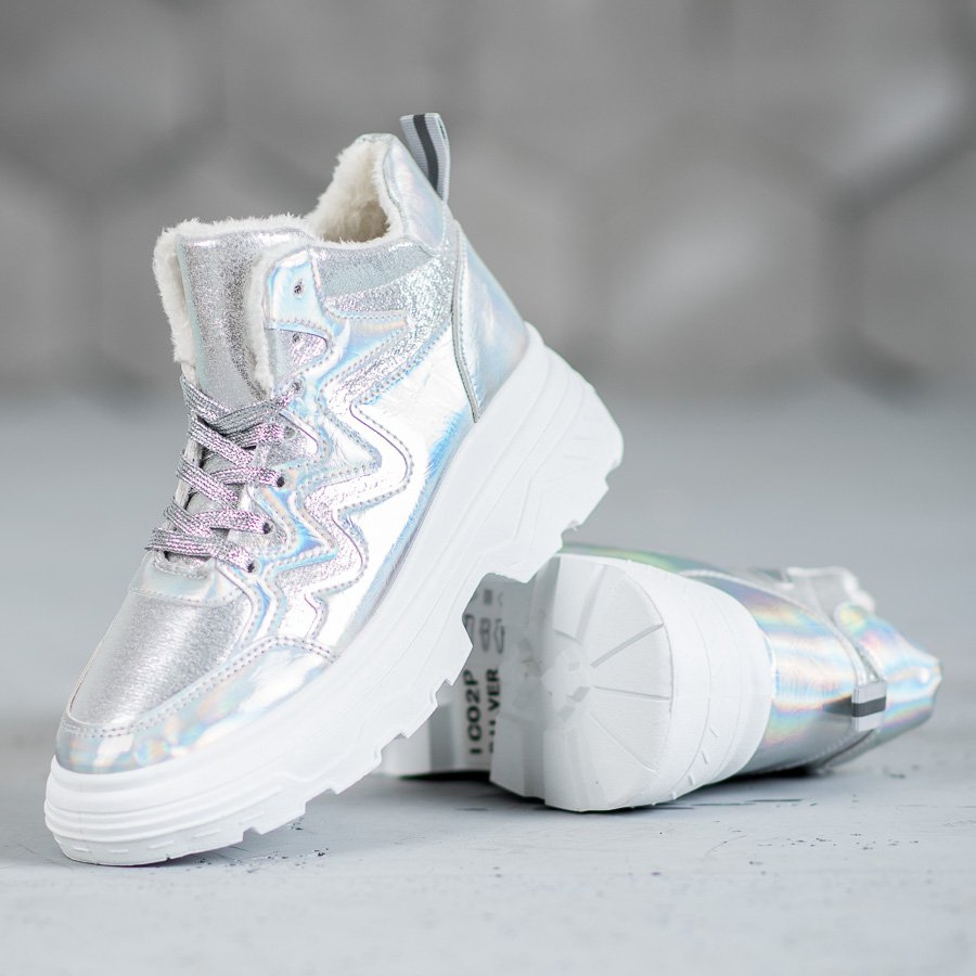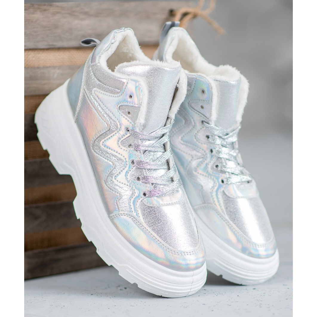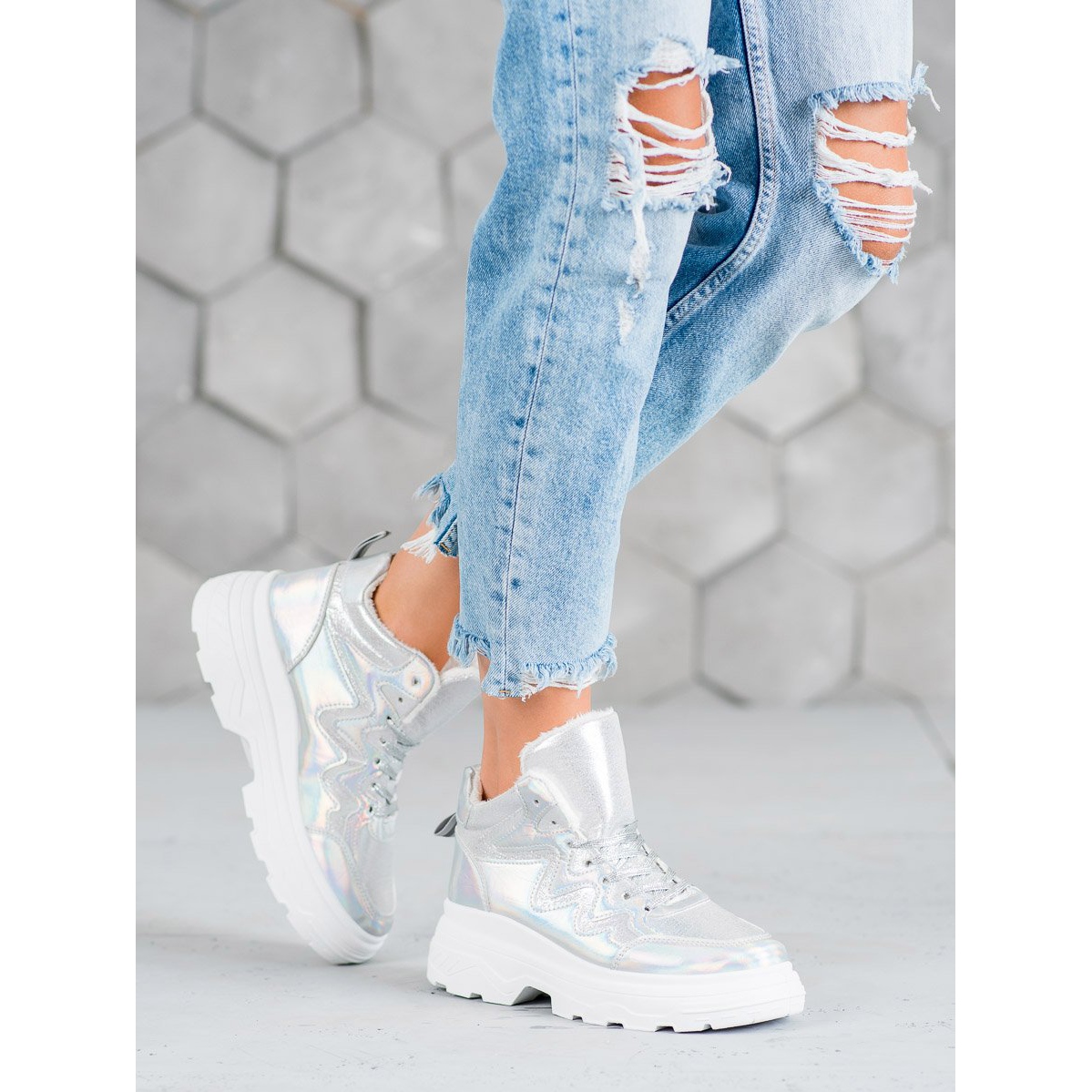 Découvrez le confort et le style avec les baskets isolées Seastar dans une élégante teinte grise. Ces chaussures de sport pour femmes arrivent jusqu'à la cheville, ce qui les rend parfaites pour une variété de tenues d'automne et d'hiver. Leur design unique est enrichi d'inserts argentés et de lacets argentés décoratifs, qui attirent l'attention et ajoutent du caractère.
