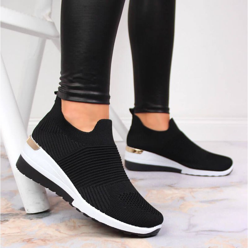 La hauteur du talon de 3 cm et le bout rond ajoutent un charme féminin aux chaussures, et la couleur noire universelle permet aux baskets de s'adapter à de nombreux styles différents, à la fois décontractés et plus élégants. De plus, le manque d’isolation en fait des chaussures parfaites pour le printemps et l’été.
