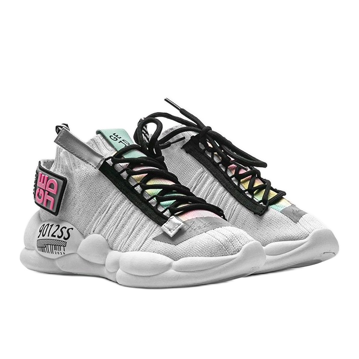 Les baskets chaussettes multicolores blanches Ava sont un choix parfait pour les personnes qui apprécient une combinaison de confort et de style. Ces chaussures de sport tendance d'une élégante couleur beige sont décorées d'inserts holographiques qui leur confèrent un caractère unique.