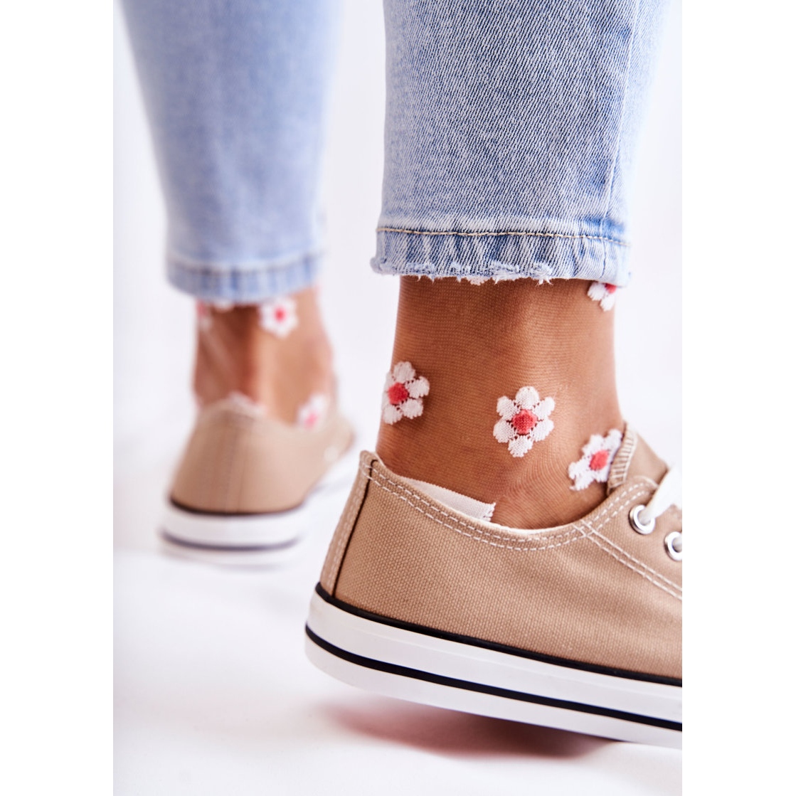 L'intérieur des chaussures est rempli d'une semelle intérieure en tissu confortable, ce qui augmente encore le confort d'utilisation. A noter également la fermeture à lacets, qui permet un ajustement parfait au pied. Les baskets ont une tige basse de 5,5 cm et une plateforme de 2 cm, ce qui les rend extrêmement à la mode et pratiques.
