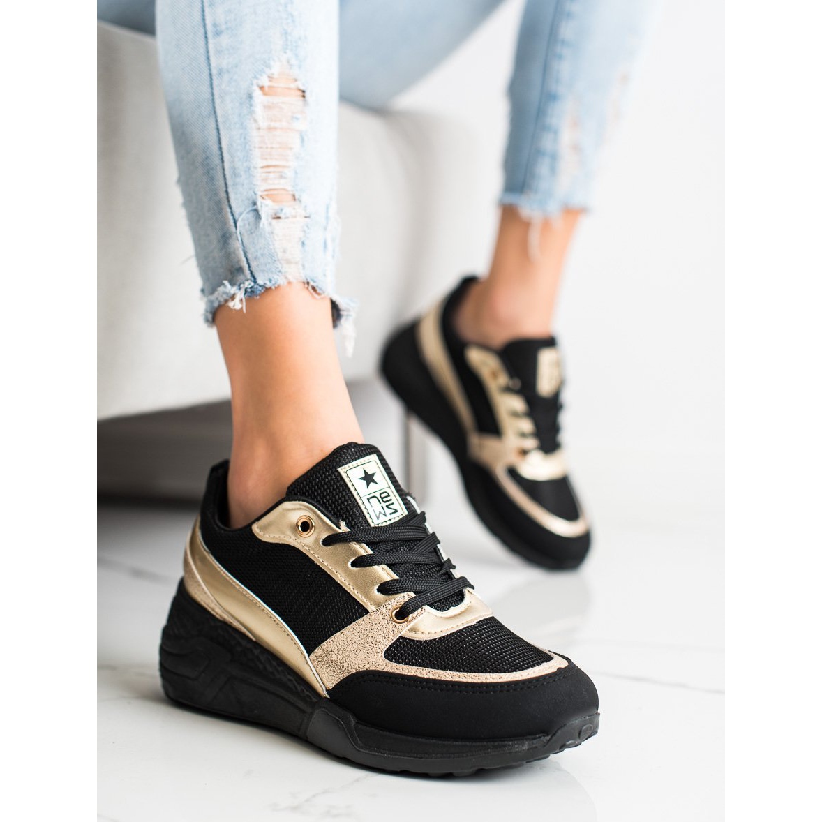 Ces chaussures universelles sont parfaites pour toutes les occasions, aussi bien au quotidien que décontractées. Les baskets pour femme SHELOVET sont parfaites pour les saisons automne-hiver et printemps-été. Grâce à leur design minimaliste en noir avec l'ajout de doré, ils s'adaptent à de nombreuses tenues, du sportif au plus élégant.