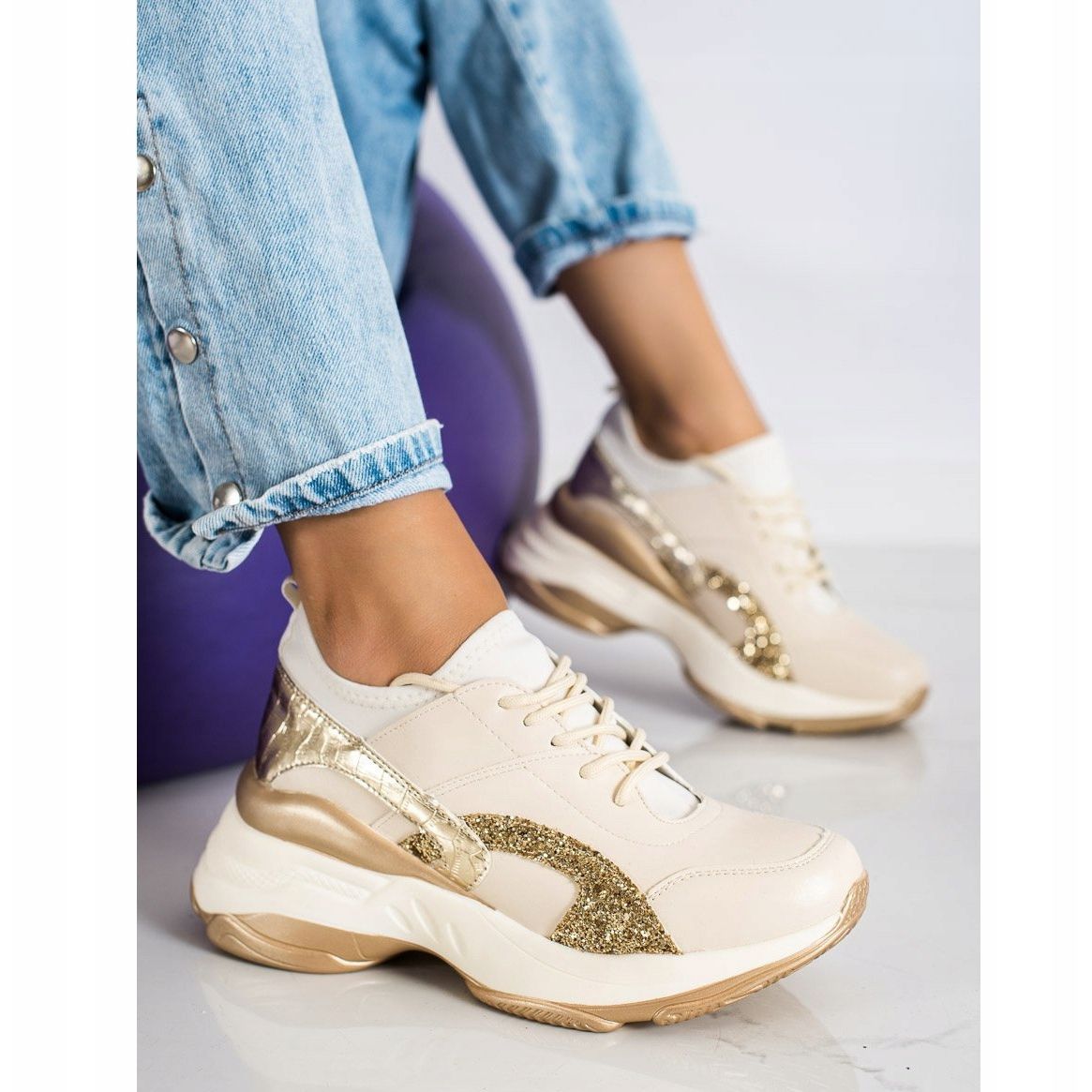 Nous vous proposons de découvrir des baskets uniques de la marque Melisa, qui allient élégance et confort. Ces chaussures de sport pour femmes dans les tons beige et doré sont une proposition parfaite pour tous les jours, aussi bien au printemps qu'en été, en automne et en hiver.