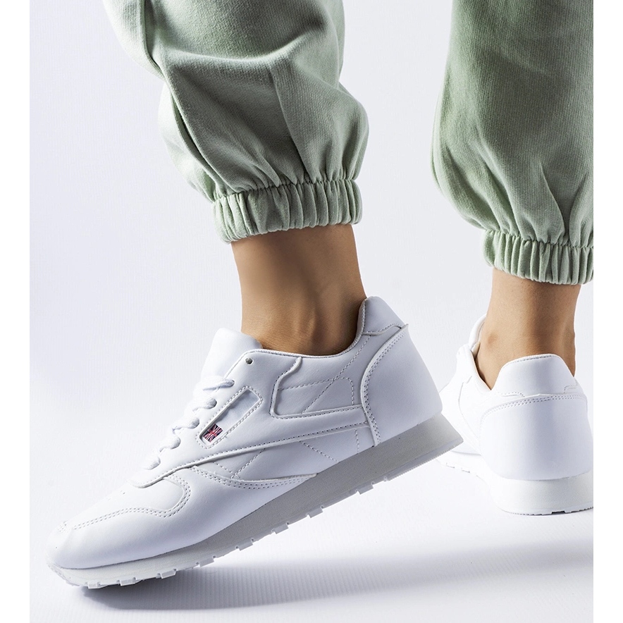 Les baskets sont en cuir écologique. Elles disposent également d'une semelle en caoutchouc qui offre une bonne traction sur diverses surfaces. L'insert est en tissu. La couleur des chaussures et de la semelle est blanc classique. Le modèle ne comporte pas de décorations ou de motifs supplémentaires, ce qui souligne son caractère classique.
