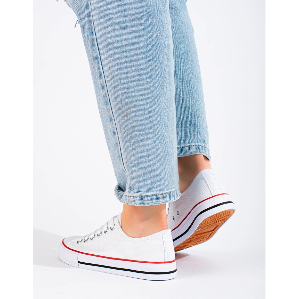 Les baskets féminines blanches universelles dans une coupe classique - parfaite tous les jours. Fabriqué entièrement de tissu, avec une semelle intérieure textile et un fourrage doux et construit pour le confort. Dentelle -up, bas, avec une semelle en caoutchouc avec une bande de roulement, combinez un personnage sportif avec une élégance décontractée.