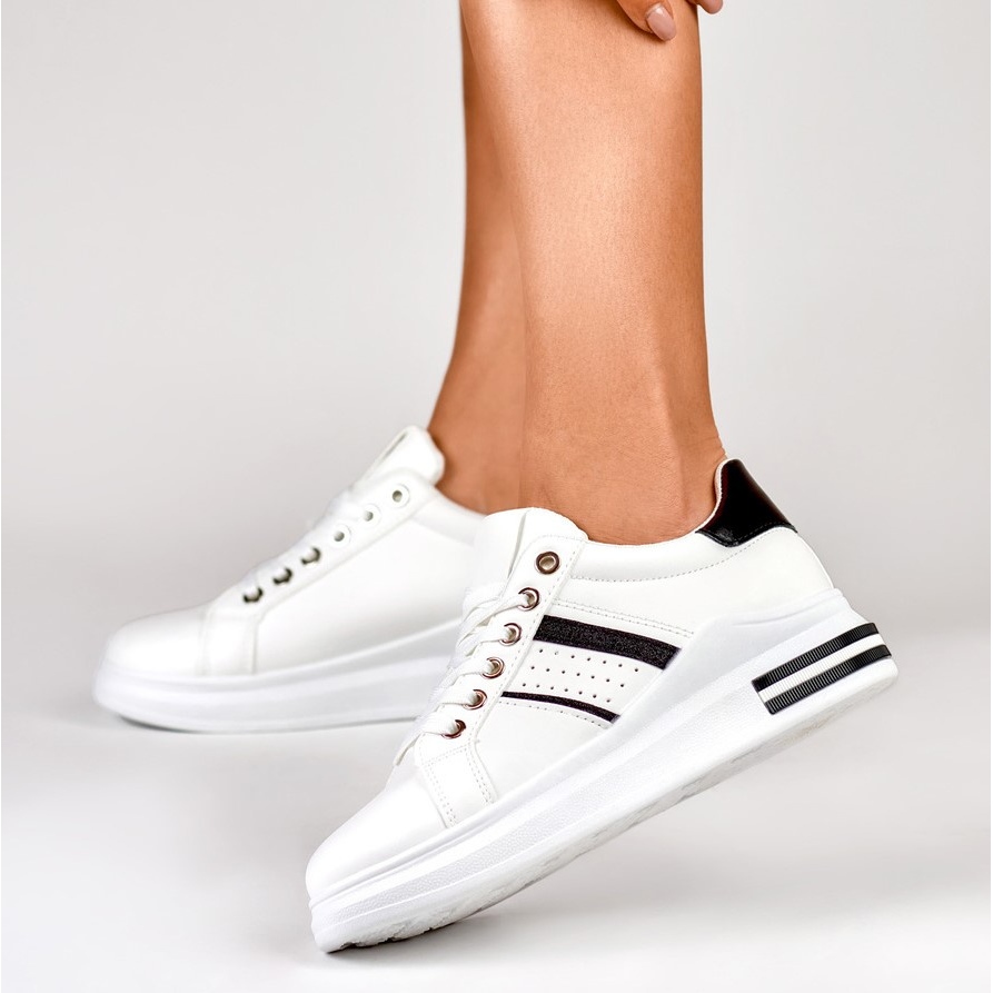 Ces chaussures sont basses, sans motif, ce qui leur donne un look classique. La couleur supplémentaire est le noir, qui contraste avec les éléments blancs. Dans l’ensemble, ces baskets noires et blanches pour femmes sont un choix élégant et confortable pour chaque femme.