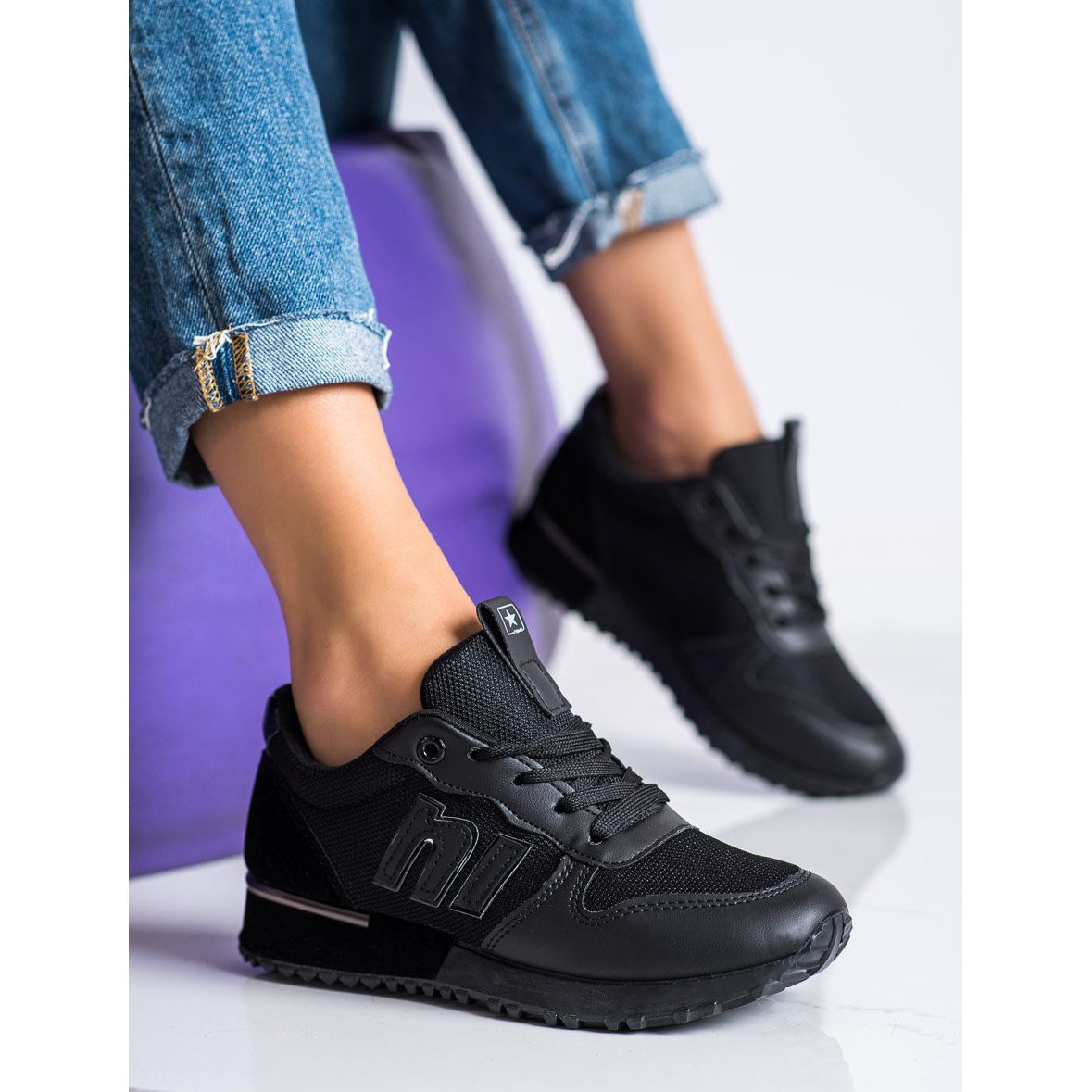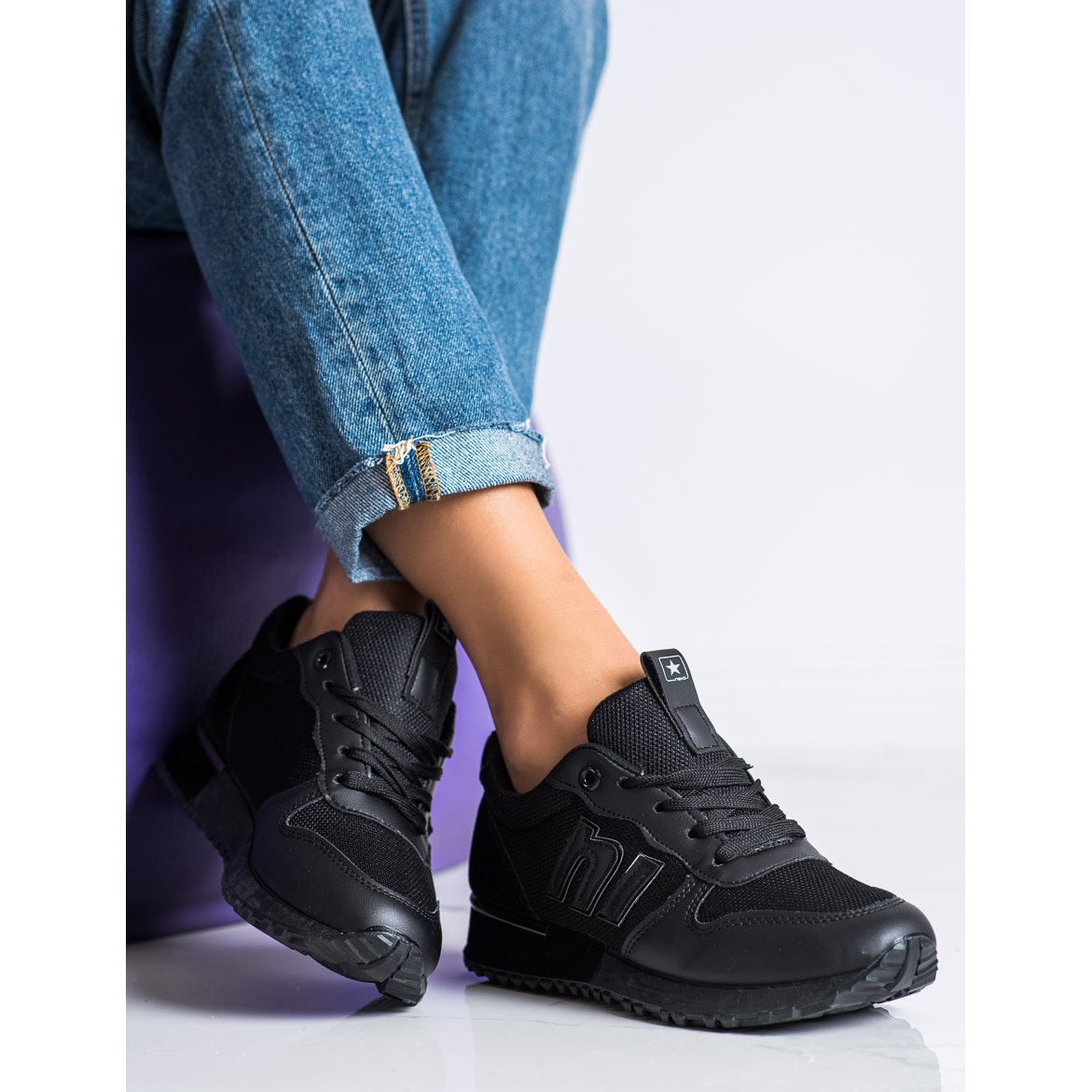 Les baskets noires SHELOVET classiques avec une plateforme de 3 cm de haut et un bout rond ajoutent une élégance subtile tout en conservant un caractère sportif. L'intérieur des chaussures est doublé d'une matière 100 % textile, ce qui assure un confort même en cas de port prolongé. La fermeture à lacets permet un ajustement parfait au pied.