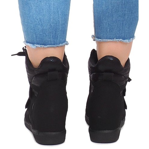 Nous présentons les baskets compensées 1628 dans une élégante couleur noire - le choix parfait pour les femmes qui apprécient le style et le confort. Ces baskets compensées uniques sont une combinaison parfaite de design à la mode et de praticité. Grâce à la hauteur de cale d'environ 8 cm, ils ajouteront une hauteur appropriée tout en assurant un confort de port.