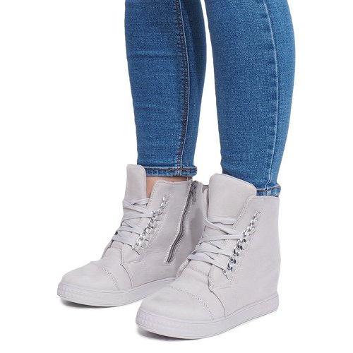Les baskets compensées 1867 en gris sont le choix parfait pour les femmes qui souhaitent allier confort et style tendance. Fabriquées en cuir écologique de haute qualité, ces baskets impressionnent non seulement par leur apparence, mais aussi par leur fonctionnalité. Ils ont une cale de 8 centimètres dans une teinte plus claire, qui allonge optiquement les jambes, ajoutant de l'élégance à la silhouette.