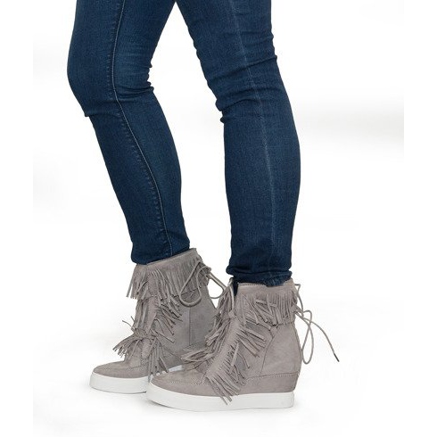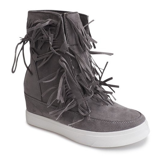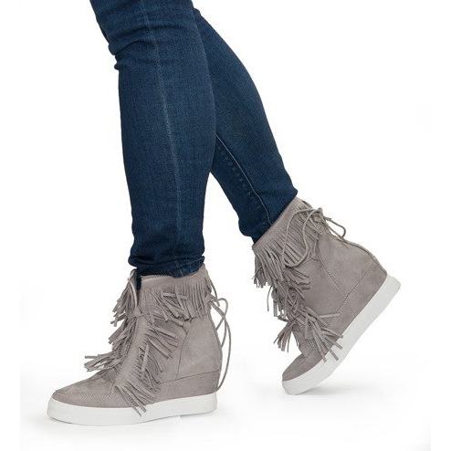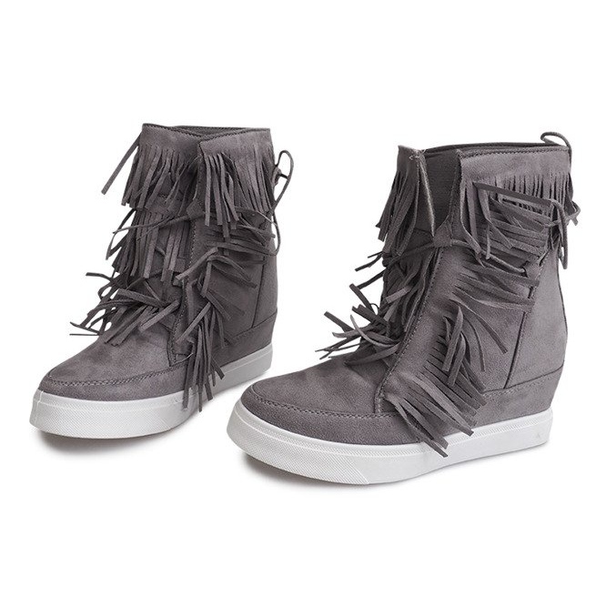 Détails: Baskets Compensées À Franges Boho 881-2 Gris