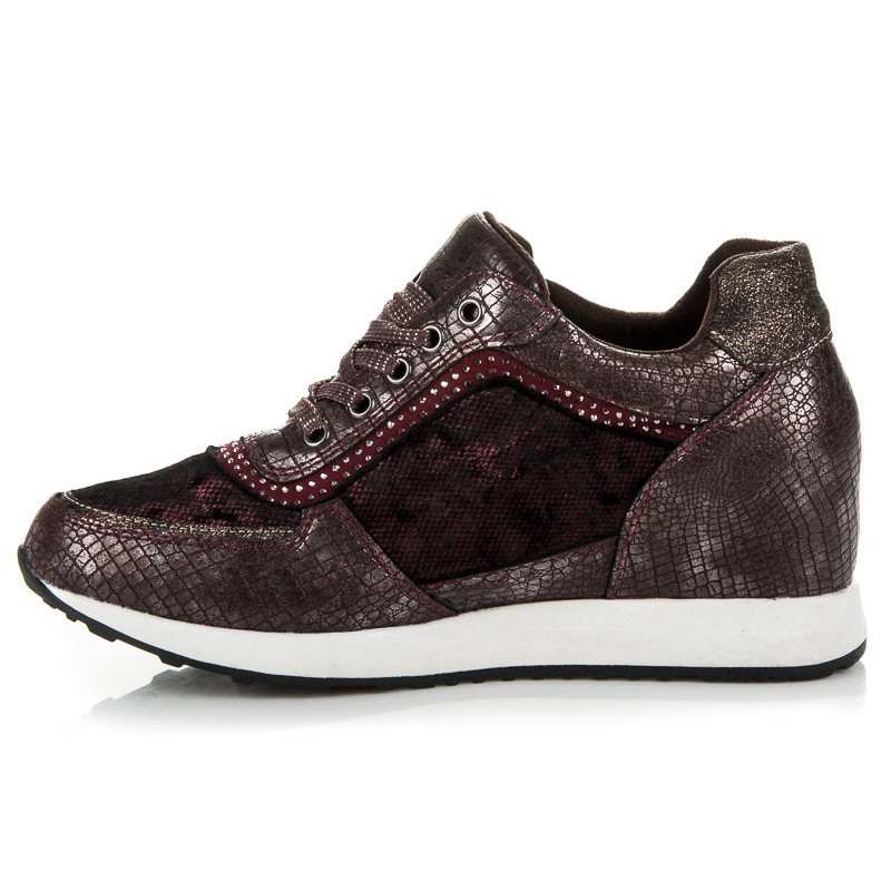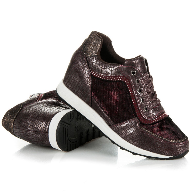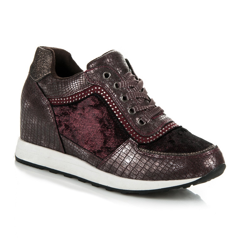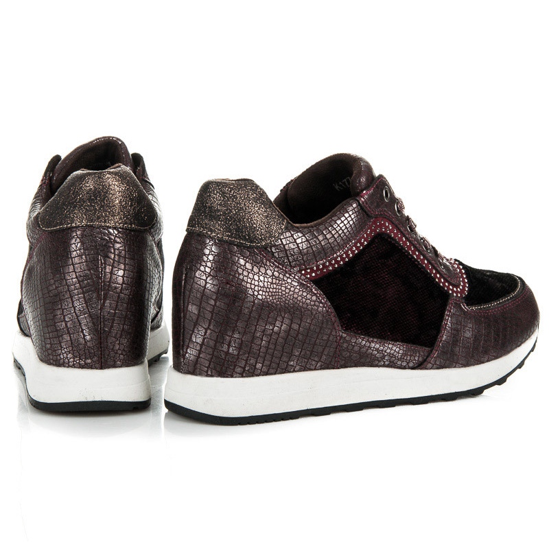 Découvrez un style unique avec les baskets compensées bordeaux de la marque Kylie ! Ces chaussures pour femme extrêmement tendances allient design original et confort exceptionnel. La couleur rouge intense, enrichie d'un imprimé bordeaux unique, en fait un excellent choix pour les femmes qui veulent se démarquer.