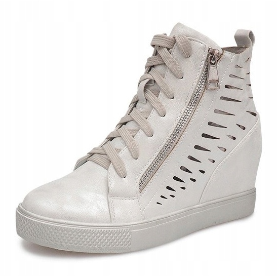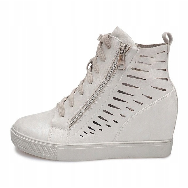 Découvrez les baskets compensées ajourées HQ881 dans un coloris gris et argent très tendance. Ces chaussures élégantes et sportives seront le choix parfait pour les femmes qui apprécient à la fois le confort et le design moderne. Les baskets se caractérisent par une élégante cale basse, d'environ 7 cm de haut, qui leur donne de la classe et allonge optiquement les jambes.