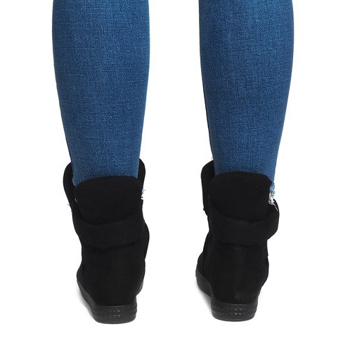 Nous vous présentons les élégantes baskets compensées noires 1703, qui allient parfaitement confort et style. La hauteur du coin d'environ 6,5 cm rend non seulement la silhouette plus fine, mais donne également aux jambes un aspect phénoménal. Fabriquées en cuir suédé écologique de haute qualité, ces chaussures sont confortables à porter même par temps froid.