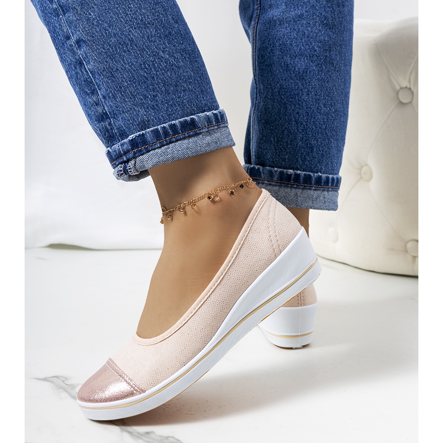 Nous vous présentons les baskets compensées Barrie beiges, qui sont le choix parfait pour les femmes à la recherche de chaussures élégantes et confortables pour un style quotidien. Ce modèle se distingue par une tige en tissu de haute qualité imitant l'éco-daim, ce qui leur confère un caractère élégant. Un avantage supplémentaire est l'embout métallique dans une teinte nude, qui ajoute une brillance subtile et donne aux baskets un look unique.