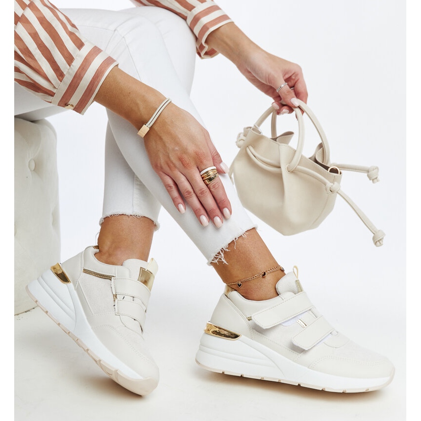 Les baskets compensées beiges à fermeture fermeture scratch d'Orly sont l'option parfaite pour les chaudes journées d'été ! Leur design moderne et élégant les rend parfaitement adaptés aux tendances de la mode actuelles. La coupe basse et le bout rond assurent confort de port et liberté de mouvement, et la couleur beige avec un délicat accent doré leur donne un caractère élégant.