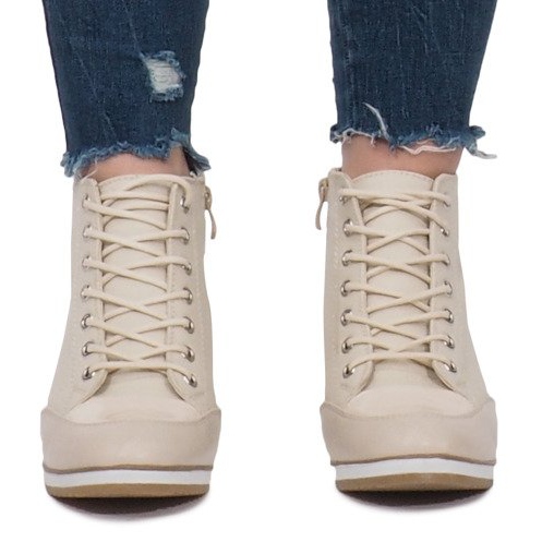 Le motif dominant est la simplicité classique, ce qui rend ces chaussures faciles à combiner avec d'autres éléments de votre style. La hauteur des chaussures de 15 cm les rend plus fines et en même temps elles sont si polyvalentes que vous pouvez les porter presque partout. Choisissez les baskets compensées Capucine beiges et profitez de confort et de style toute la journée !