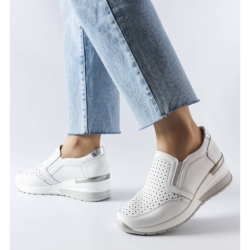 Les baskets compensées Vernon blanches ajourées sont une proposition pour les amateurs de style original et de confort. Ces chaussures à enfiler sont une combinaison élégante de design moderne et de confort décontracté qui répondra aux attentes des utilisateurs les plus exigeants.