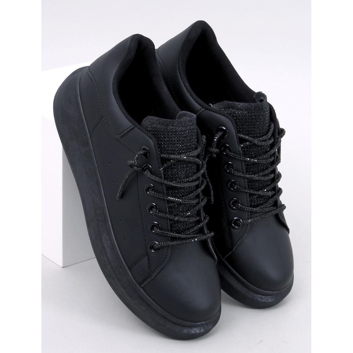 Ces baskets noires pour femme avec un talon compensé de 5 cm de hauteur brisent la perception stéréotypée des chaussures de sport. La languette brillante parsemée de zircons et les lacets au style unique attirent non seulement l'attention, mais ajoutent également de l'élégance et un caractère unique. C'est un choix idéal pour les femmes qui apprécient à la fois le confort et la capacité de se démarquer dans la foule.
