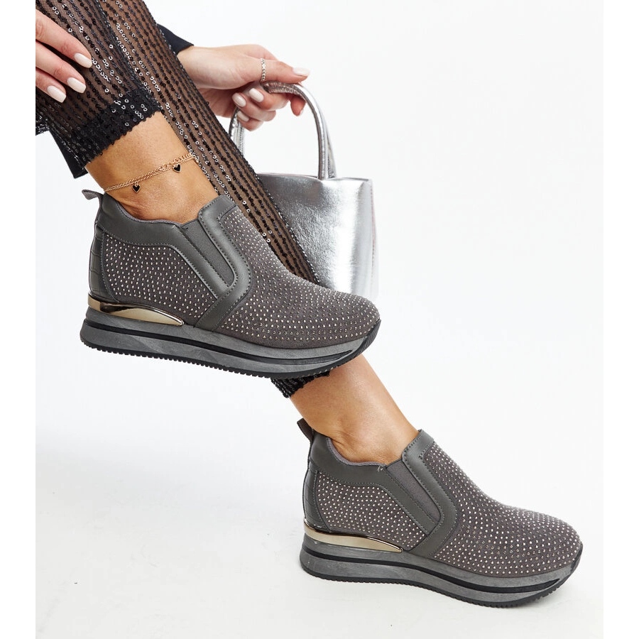 Les tendances actuelles en matière de chaussures incluent des solutions élégantes et extrêmement confortables. Les baskets compensées gris foncé sont une proposition pour les femmes qui apprécient à la fois l'originalité et le confort. Ces chaussures basses à enfiler et à bout rond s'intègrent parfaitement dans un style décontracté et urbain, étant un élément qui donnera du caractère à n'importe quel style.