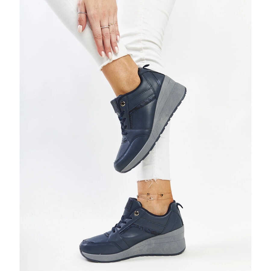 Les baskets compensées bleu marine sont des chaussures élégantes, mais en même temps extrêmement fonctionnelles qui fonctionneront bien dans de nombreuses garde-robes de femmes modernes. Ces chaussures bleues à la fabrication esthétique allient classe et confort, devenant un incontournable pour tout amateur de solutions à la mode et pratiques.