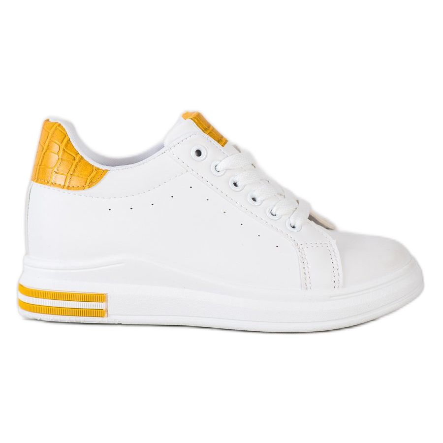 Détails: Ideal Shoes Baskets compensées de printemps blanc jaune