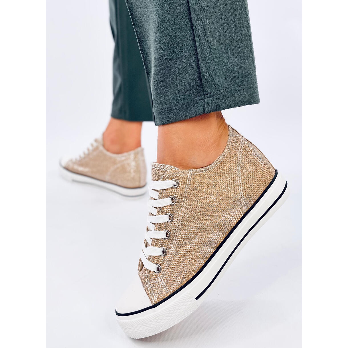 Baskets compensées pour femme, hauteur 5 cm. Ce modèle unique vous ravira avec sa finition irisée et pailletée... Elles ont une coupe classique avec une tige plus haute qui souligne leur style. Ils sont en tissu. Insert intérieur - tissu.