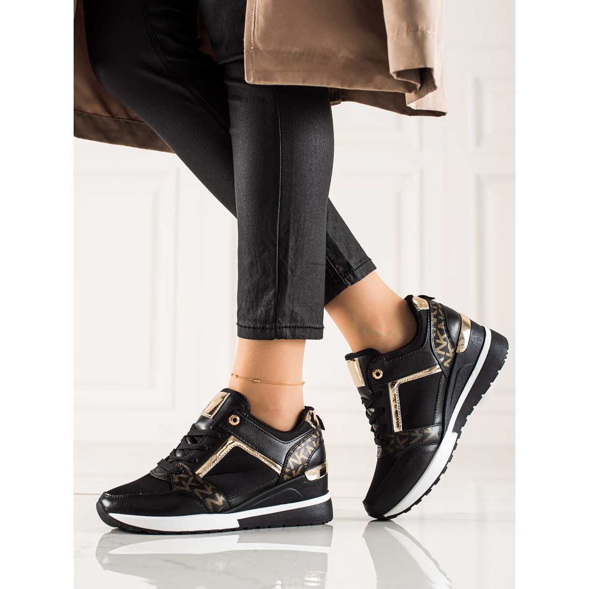 Détails: TRENDI Baskets compensées élégantes noir doré
