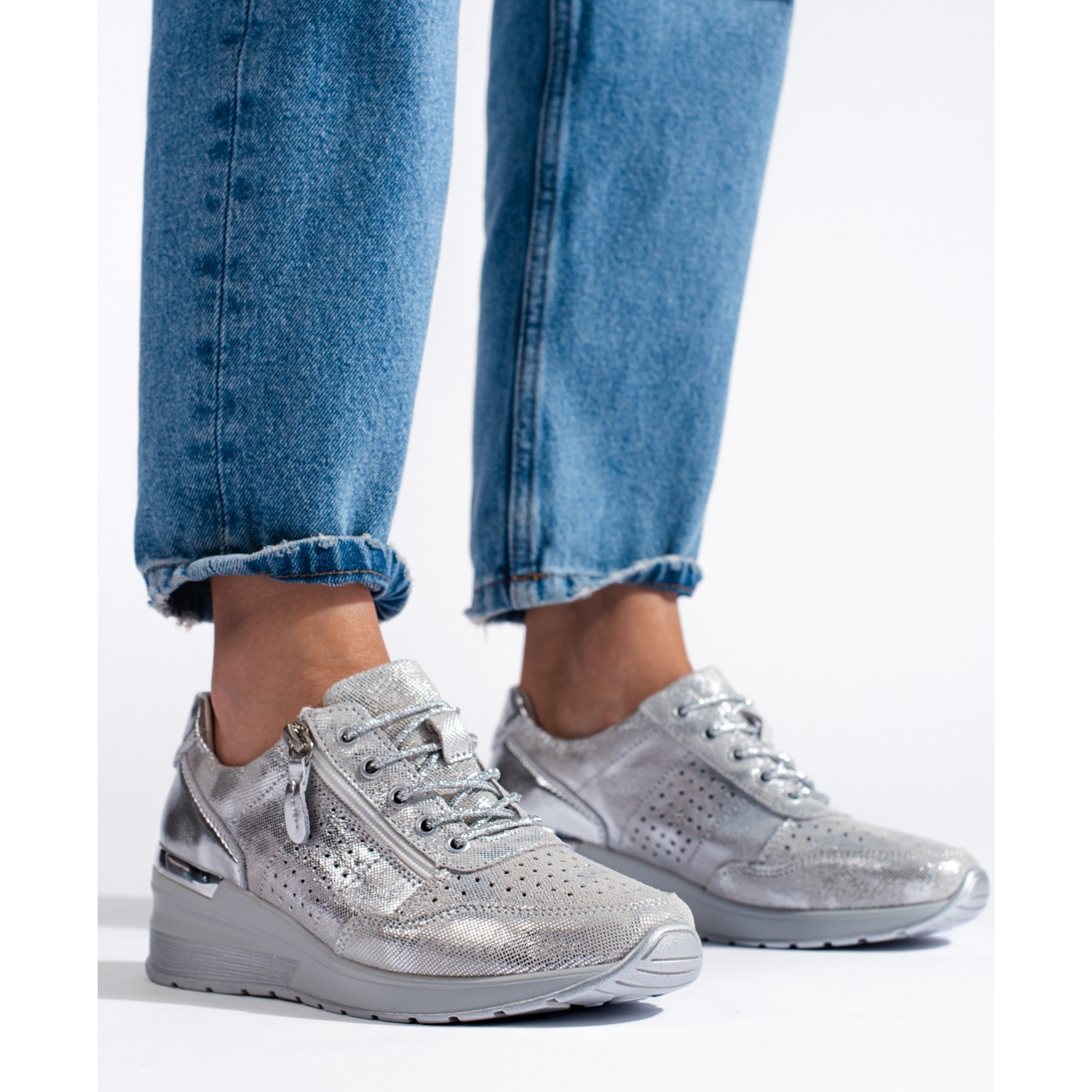 Découvrez des baskets compensées en cuir uniques dans une couleur argentée extrêmement tendance, parfaites pour toutes les femmes modernes ! Ces chaussures élégantes, produites par la marque Inna Marka, allient élégance et caractère sportif, ce qui les rend parfaites pour un style quotidien.