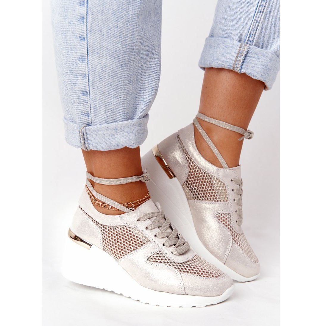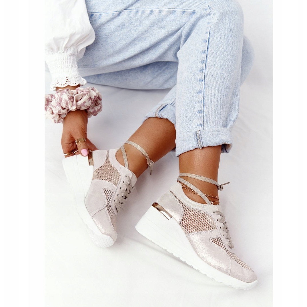 Détails: Baskets Compensées En Cuir Avec Maille S.Barski Doré d'or
