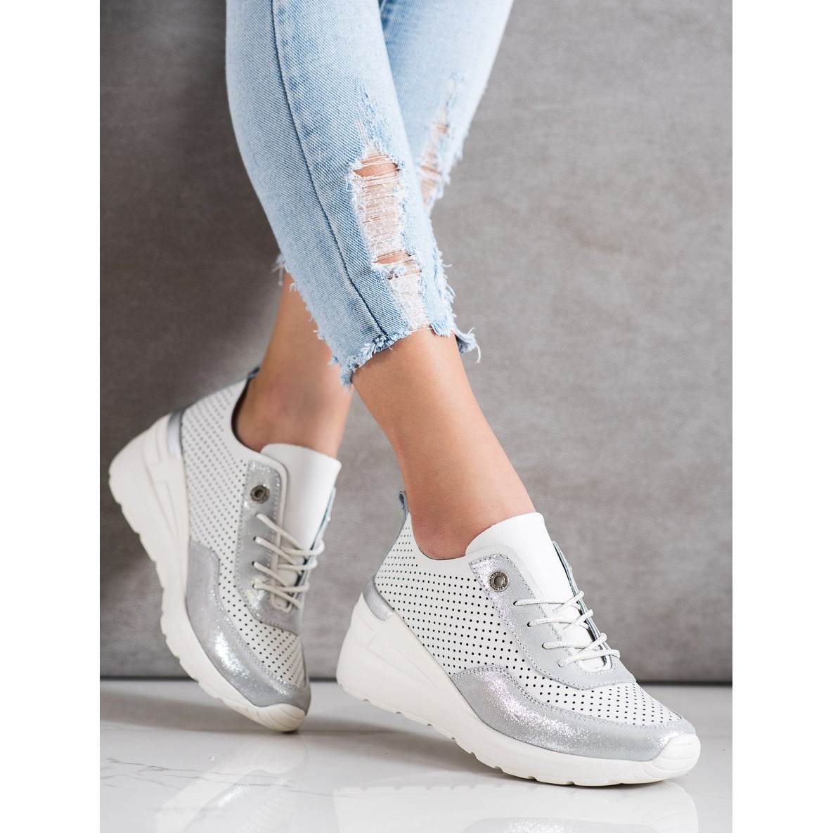 Un avantage supplémentaire des baskets Goodin est le motif ajouré subtil et les paillettes délicates, qui attirent l'attention et confèrent aux chaussures un caractère unique. La fermeture à lacets assure un ajustement parfait, s'adaptant à la forme du pied.