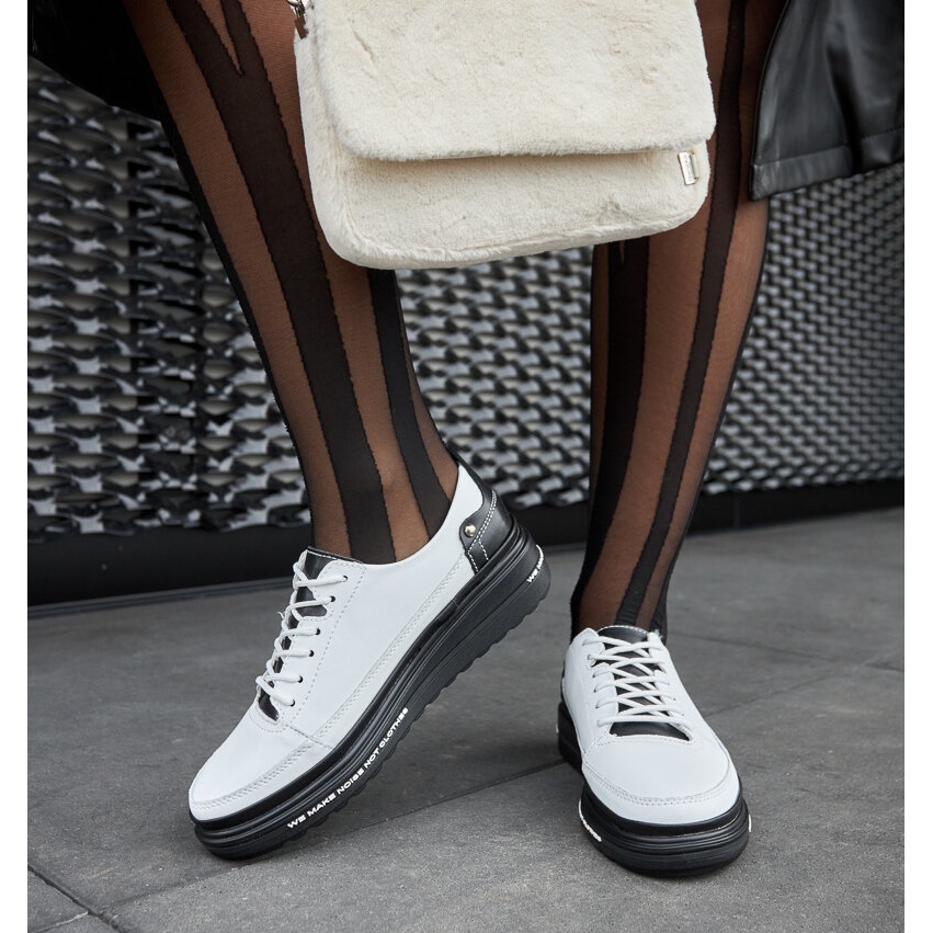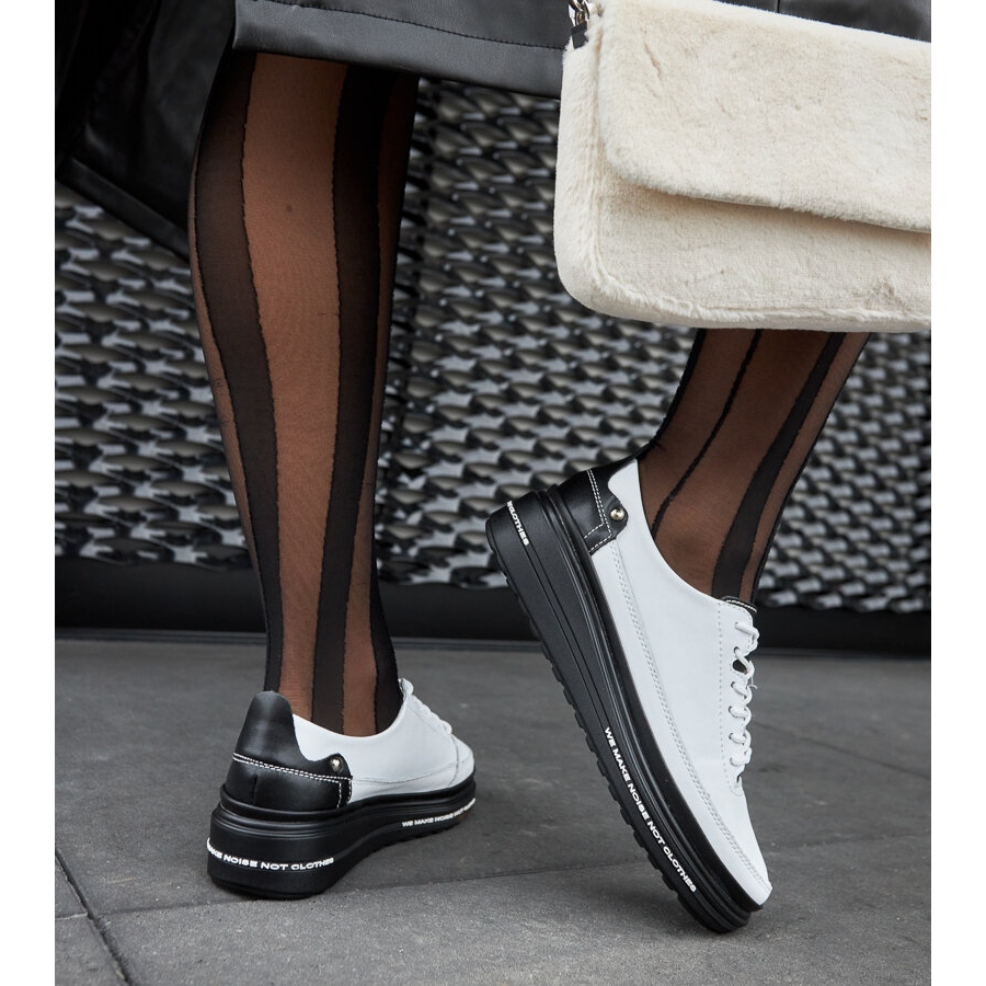 La semelle en caoutchouc noir garantit une bonne adhérence et une bonne stabilité, tandis que la cale basse (hauteur 4 cm) ajoute une élégance subtile et allonge optiquement les jambes. Le bout rond rend les baskets confortables et ne restreint pas les mouvements, ce qui les rend parfaites pour les activités quotidiennes.