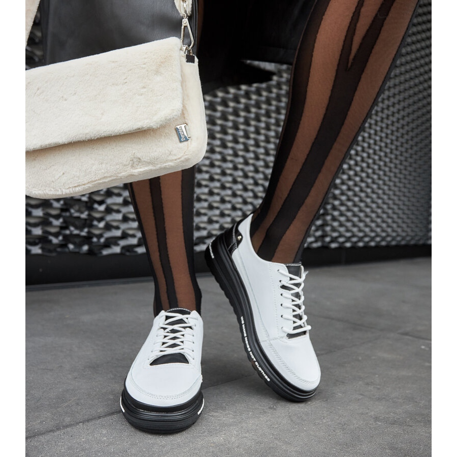 Nous vous présentons les baskets compensées en cuir noir et blanc Piano, qui s'adapteront parfaitement au style estival de chaque femme à la mode. Ces chaussures élégantes allient confort et design moderne, ce qui en fait le choix parfait pour les journées chaudes. Fabriqués en cuir naturel de haute qualité, ils offrent non seulement un look élégant, mais également une durabilité et un confort de port.