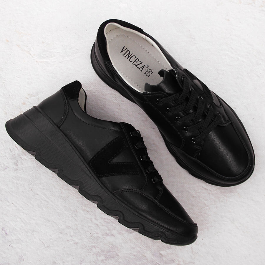 Vinceza Baskets compensées en cuir noir pour femme Vinceza 7918 le noir