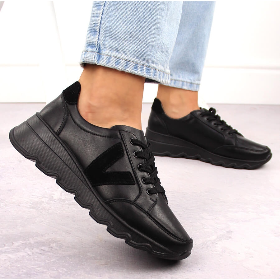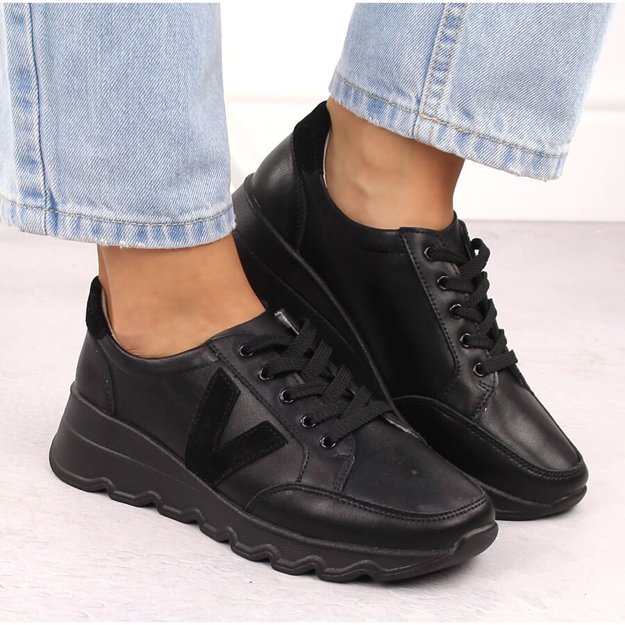 Détails: Baskets compensées en cuir noir pour femme Vinceza 7918 le noir