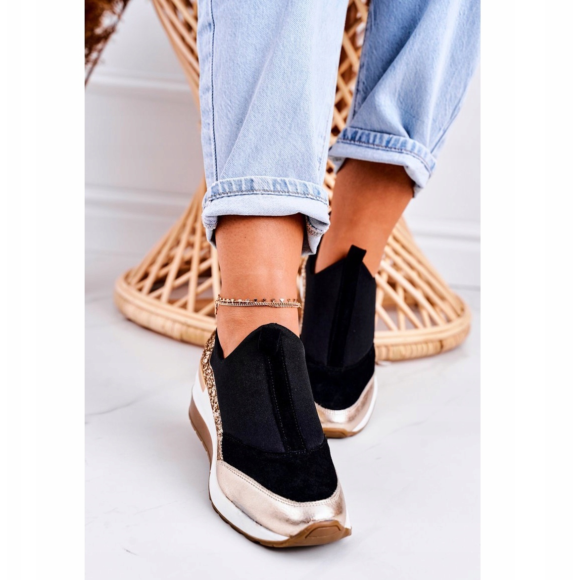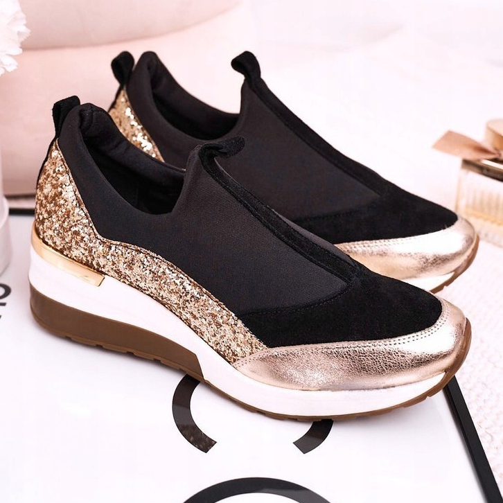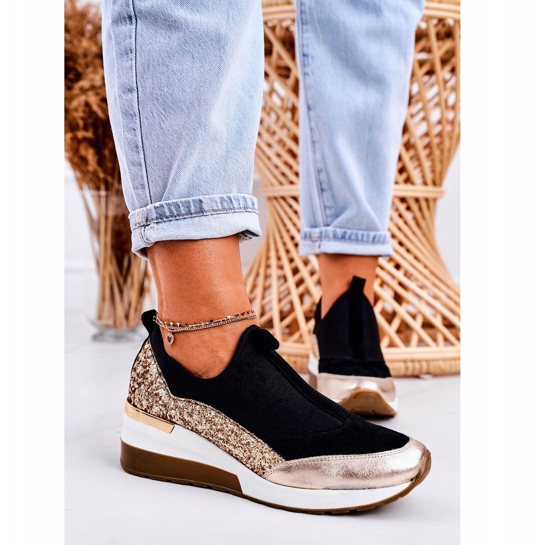 Détails: Nicole Baskets Compensées En Cuir Pour Femmes Noir Doré Frances le noir