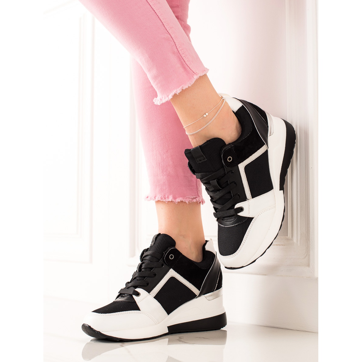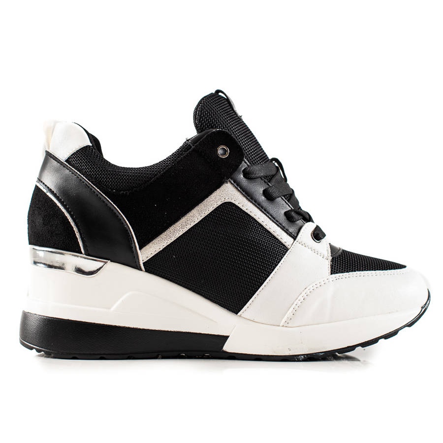 Choisissez les baskets compensées légères TRENDI en blanc et noir pour profiter de la mode, du confort et de la fonctionnalité à chaque pas ! Vos pieds méritent ce qu'il y a de mieux et ces baskets répondront sûrement à vos attentes. Investissez dans votre style et votre confort dès aujourd'hui !