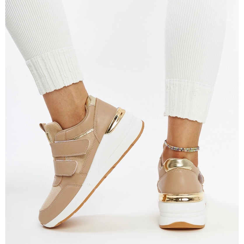 Détails: Baskets compensées marron à fermeture velcro d'Orly brun