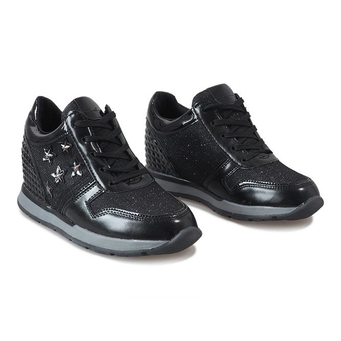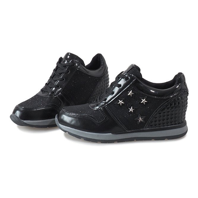 Inna marka Baskets compensées noires à étoiles BM1915-3 le noir