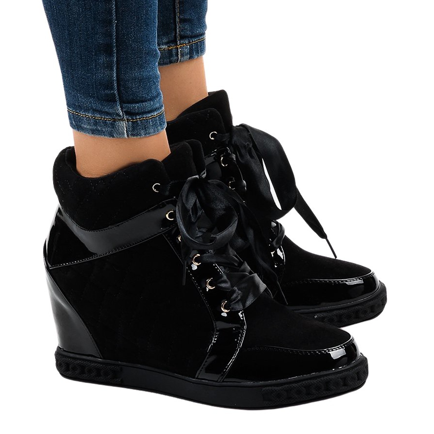 Baskets compensées noires à la mode KLS-109-3